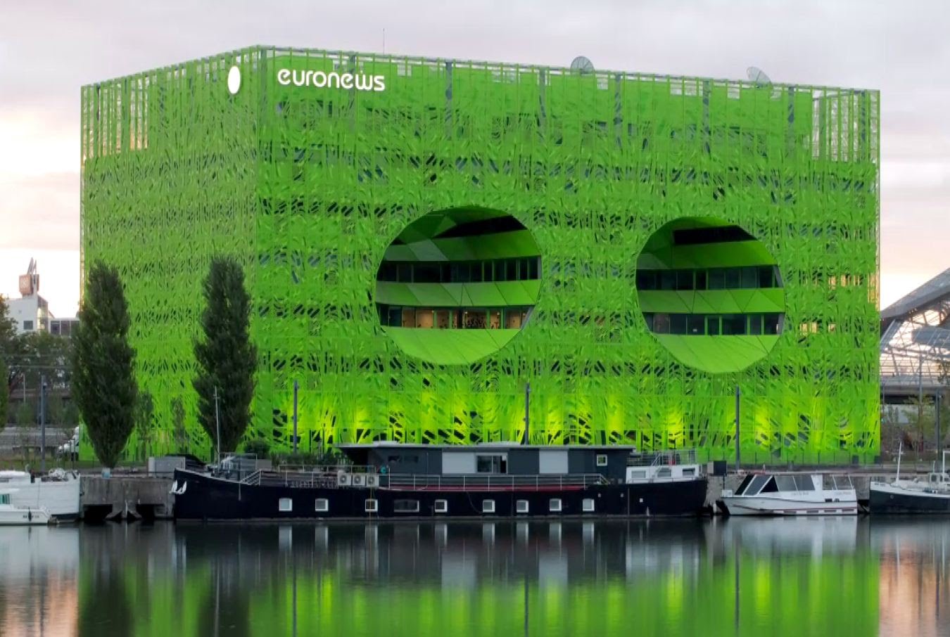 Gli architetti Jakob+MacFarlane hanno realizzato nel 2015 un nuovo edificio particolare nella zona portuale di Lione: si tratta del quartier generale dell’emittente televisiva internazionale Euronews ed è a forma di cubo. La facciata è di un colore verde acido e presenta due grandi buchi a forma di uova. Essi rappresentano due grandi occhi che guardano il fiume o, metaforicamente, gli occhi di Euronews che da anni cattura e rappresenta gli eventi che avvengono nel mondo. In sostanza, questi “buchi” generano spostamento d’aria, facendo in modo che l’edificio non abbia pressoché bisogno di altro supporto attivo per la climatizzazione degli ambienti.